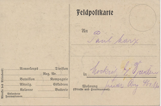 K. Marx (?) Fresnoy 6.II.15Reverse:Addressed to Paul Marx