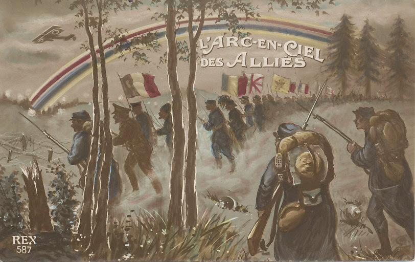 "A rainbow shimmers over an Allied advance, French, British, Belgian, Russian, Italian."