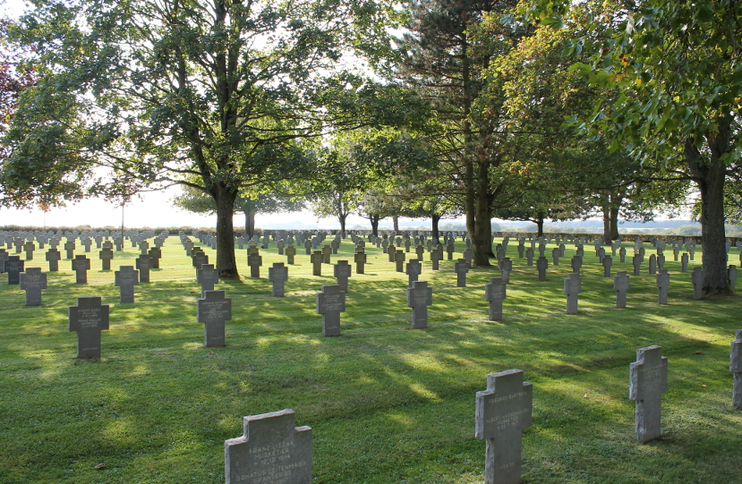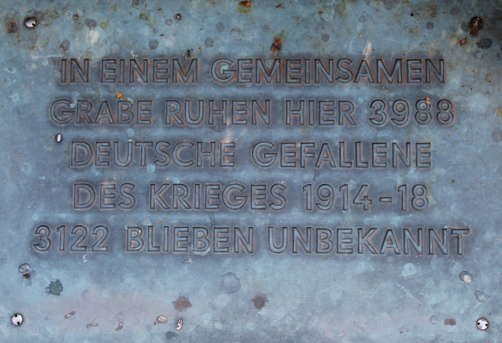 "Ossuary with the remains of 3,988 German soldiers who fell during World War I, 866 of them identified, and 3,122 unknown, in the German section of the Cerny-en-Laonnois Cemetery."