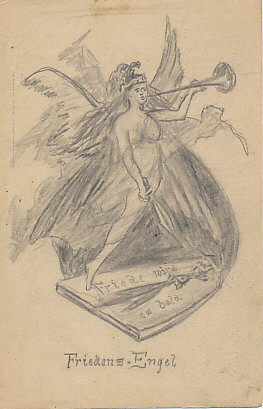 German Peace Angel pencil sketch from November, 1917, insisting Peace Will Come Soon. In fact, she would not come for another year, on November 11, 1918.