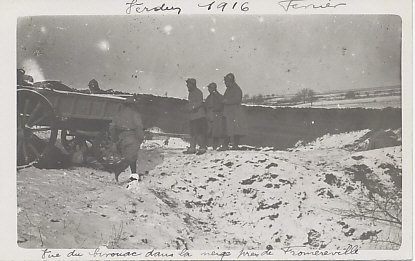 "The cannon were booming without a pause, and seemingly so near that it was bewildering to look out across empty fields at a hillside that seemed like any other. But luckily somebody had a field-glass, and with its help, a little corner of the battle of Vauquois was suddenly brought up close to us — the rush of French infantry up the slopes, the feathery drift of French gun-smoke lower down, and, high up, on the wooded crest along the sky, the red lightnings and white puffs of the German artillery. Rap, rap, rap, went the answering guns, as the troops swept up and disappeared into the fire-tongued wood; and we stood there dumbfounded at the accident of having stumbled on this visible episode of the great subterranean struggle.. . . the attack we looked on at from the garden at Clermont, on Sunday, February 28th [1915], carried the victorious French troops to the top of the ridge, and made them masters of a part of the village. Driven from it again that night, they were to retake it after a five days' struggle of exceptional violence and prodigal heroism, and are now securely established there in a position described as 'of vital importance to the operations.'" ((4), more)