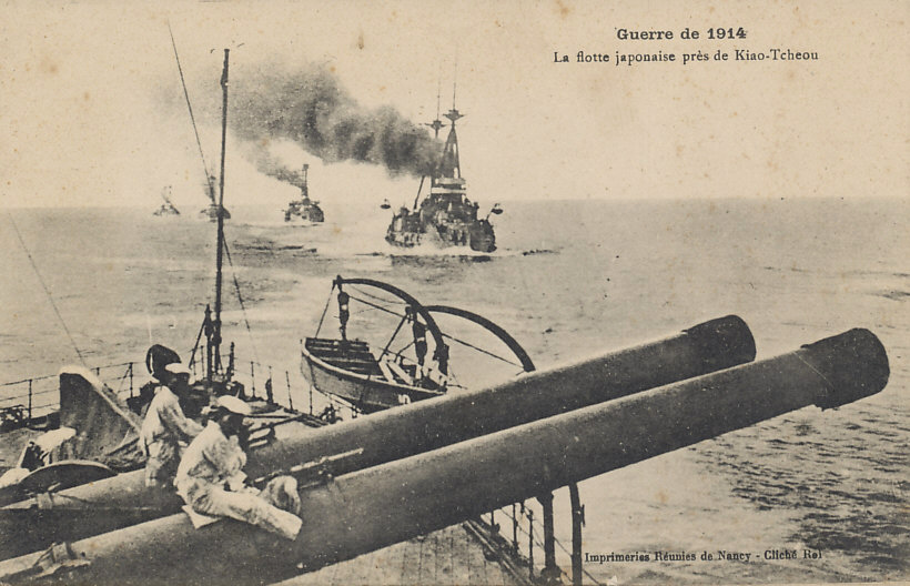 The Japanese fleet near Kiautschau, China, and the city of Tsingtao, which the Japanese besieged in October 1914 and captured on November 7.