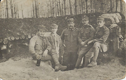 Austro-Hungarian soldiers, one with goggles around his hat, posing at their dugout in a January, 1917 photograph. The card is dated January 27, 1917, and field postmarked January 31.