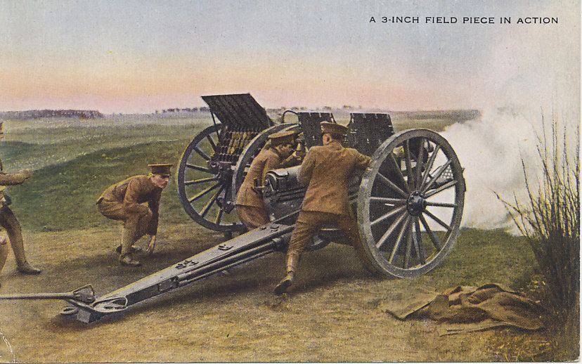 A British 3-inch field piece in action. A well-trained crew could fire as many as 20 rounds per minute.