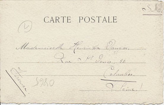 Signed F. R. 1917Reverse:Addressed to Mademoiselle Henriette Dangon