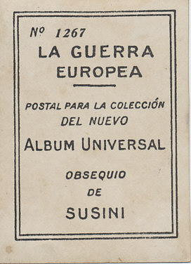 En las trincheras Francesas-llevando viveresIn the French trenches - carrying food suppliesReverse:No. 1267La Guerra EuropeaPostal para la colección Del NuevoAlbum UniversalObsequio de SusiniNo. 1267The European WarPostcard for the new collectionUniversal AlbumGift from Susini